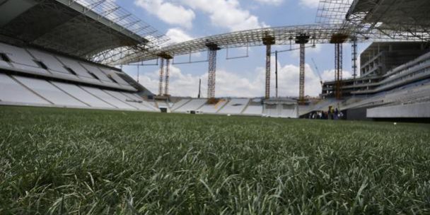 Plastic fibers are injected into natural grass fields to reinforce them. Three Brazilian clubs have adopted the system — Gremio, Santos and Corinthians, at its new Sao Paulo stadium hosting the World Cup opener and five other matches.