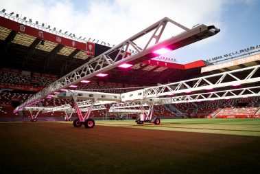 The SGL system consists of (1) grass grow lighting units – specialising in LED technology – to enhance grass recovery after practice sessions, matches or events, (2) eco-friendly grass disease prevention equipment to keep the pitch healthy and safe, (3) an all-in-one data collection tool, combined with a dashboard displaying all important pitch values to empower data driven decision making, and (4) dedicated support from our inhouse agronomists to achieve optimal results.